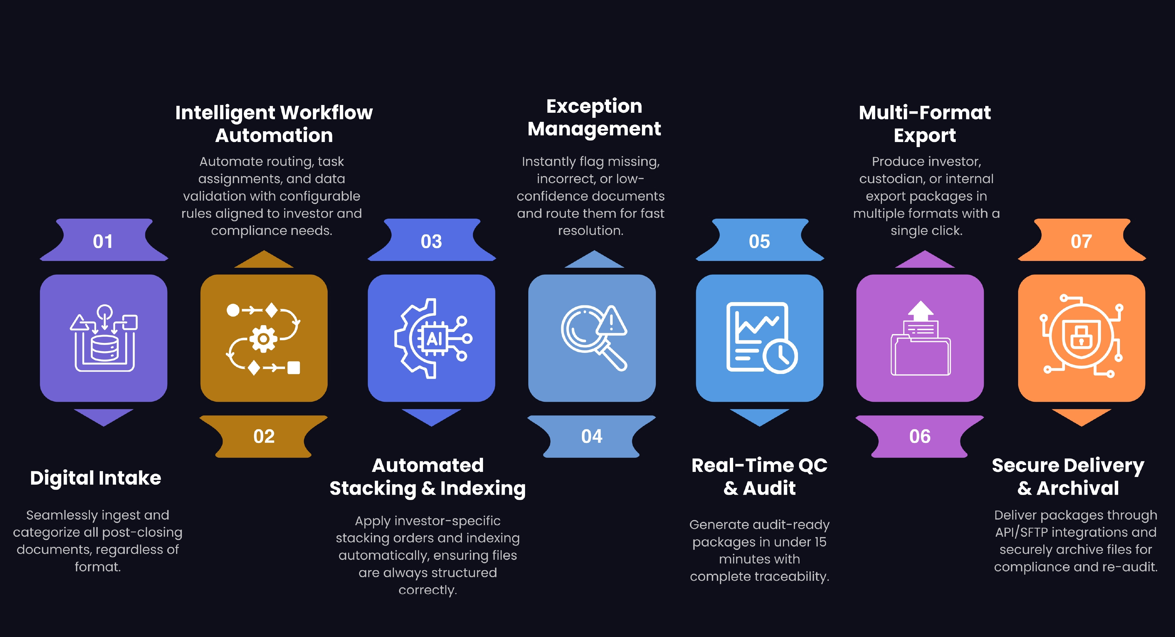 AI-powered automation for stacking, auditing, and investor delivery.